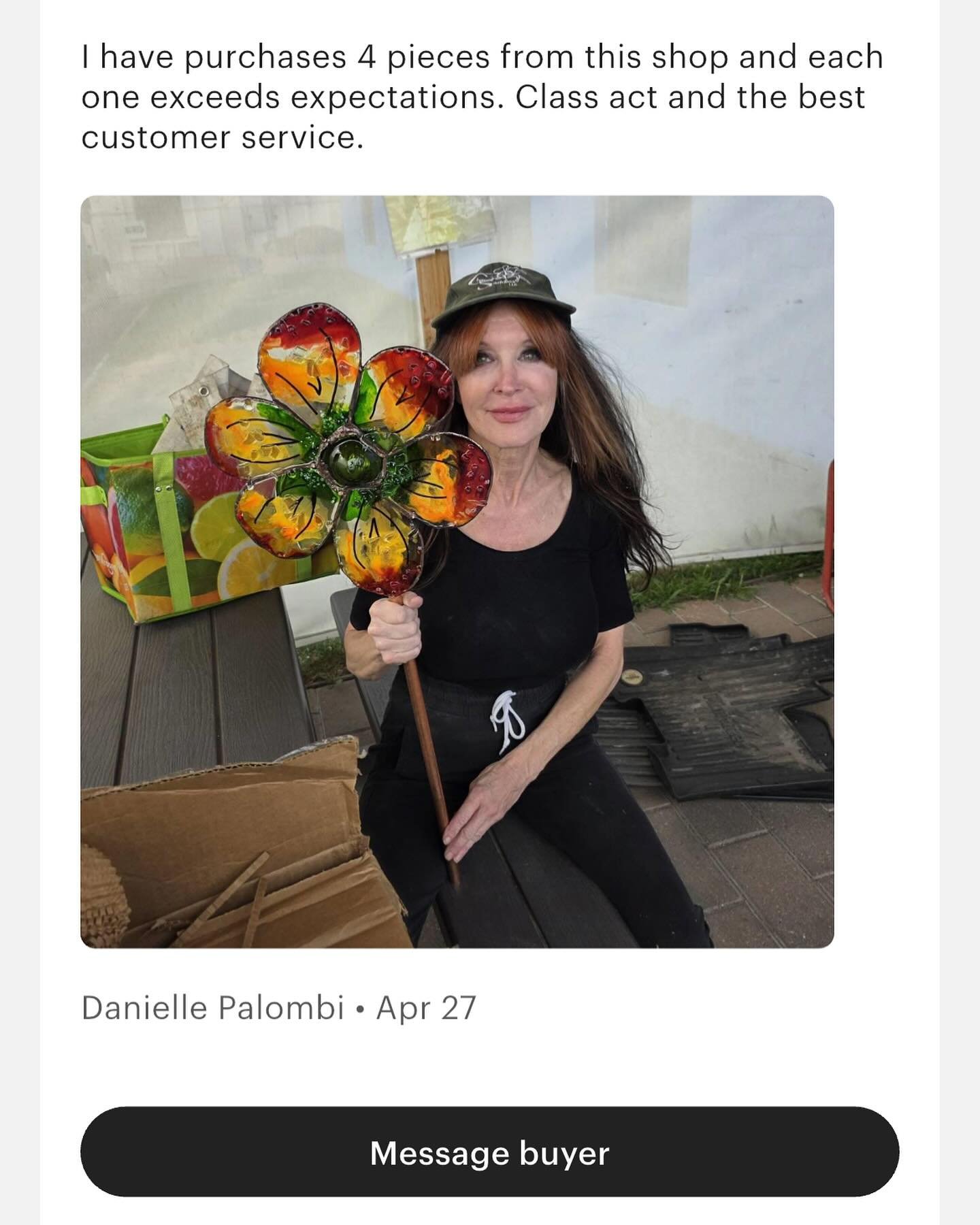 This piece is 27.5 by 27.5 inches framed. It is created with cut glass, acrylic paint, dried flowers and alcohol ink. Hang it ona wall or set it in a window to transform the light coming in.